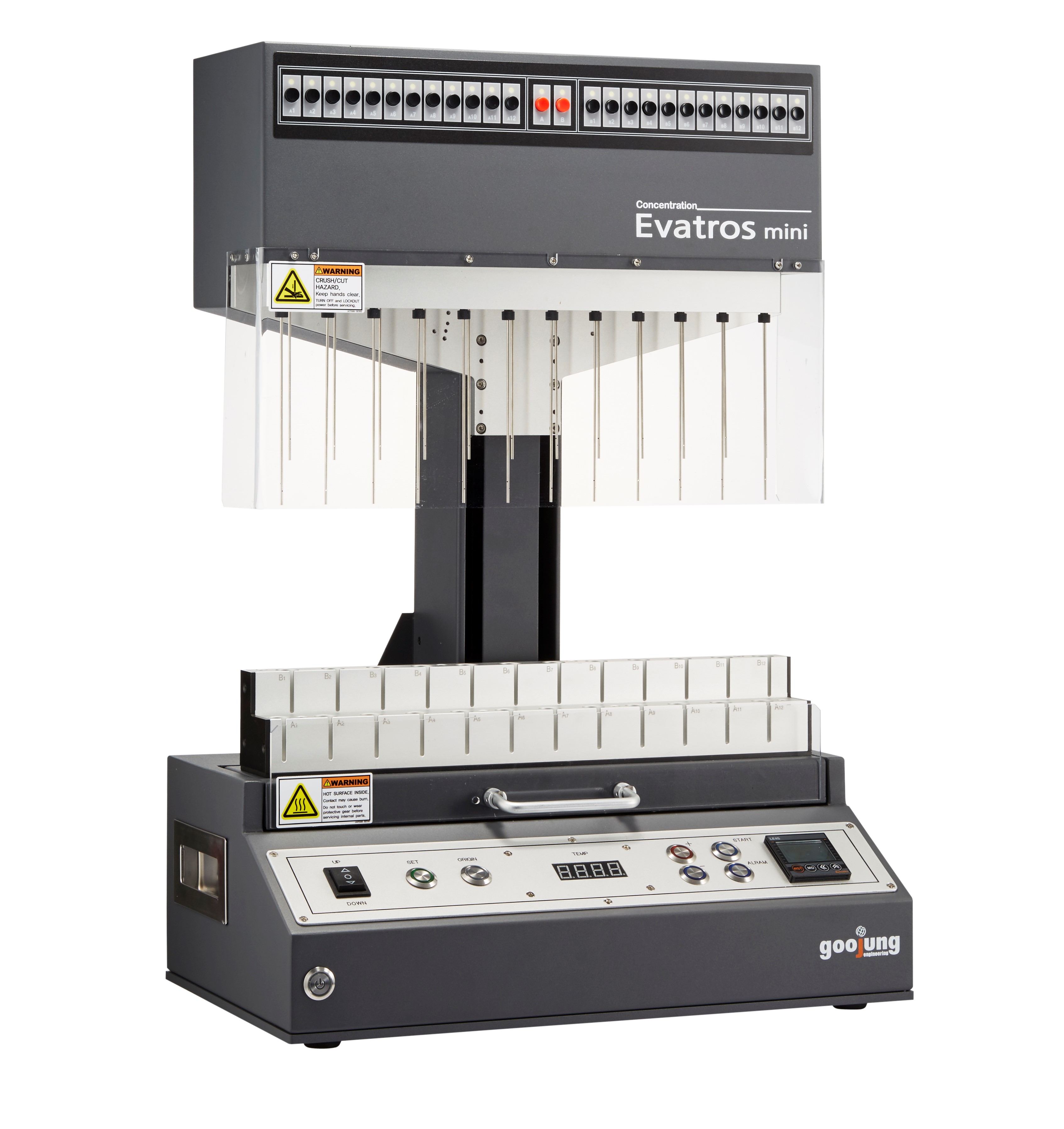 Evatros T.C.S is a total concentration system which has an evaporator, a fume hood and a gas generator.